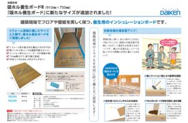 これはリフォーム工事の養生シート(保護材)チラシです。大建工業製品、910mm×750mmサイズ、6mm厚PPシート(YQ3205/YQ3
