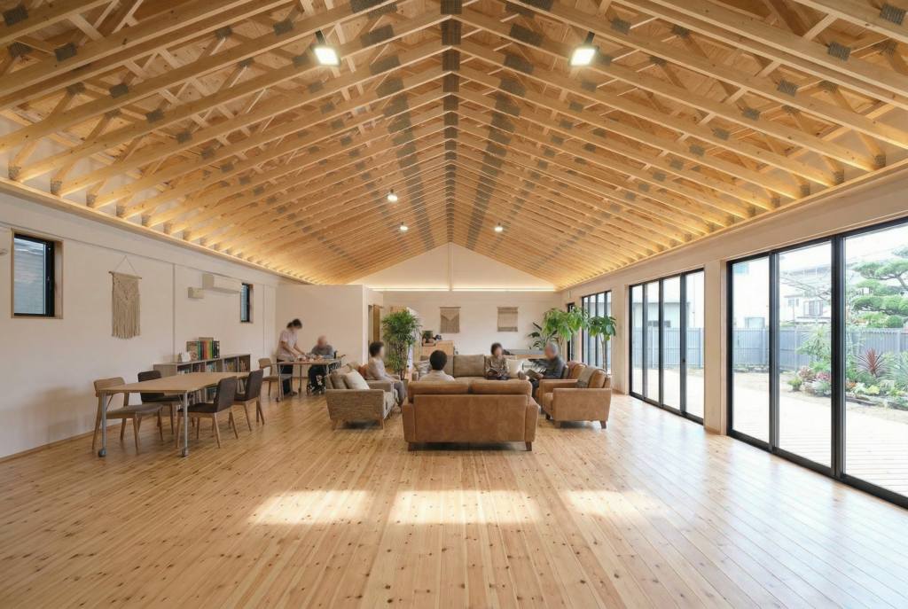 かつては2×4工法のイメージが強かったトラスですが、現在は「在来軸組工法や鉄骨造との融合」が可能になっています。 使い慣れた在来工法のフレームワークを維持しながら、大スパン・重荷重が求められる部分にのみピンポイントでトラスを組み込む。この合理的かつ柔軟なハイブリッド工法は、工場・倉庫・スポーツ施設といった非住宅領域を攻略する「次なるスタンダード」として、多くの現場で採用が始まっています。